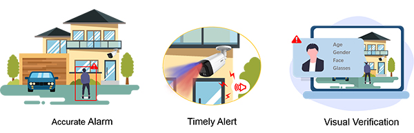 هشدار اشتباه همیشه برای کاربران یک سردرد محسوب می شود. Dahua TiOC با محافظت محیطی با استفاده از هوش مصنوعی و SMD Plus ، با هدف قرار دادن شناسایی افراد و وسایل نقلیه ، ضمن فیلتر کردن اشیا غیر هدف مانند حیوانات ، برگها و چراغ های جلو اتومبیل ، عملکرد هشدار دقیق را ارائه می دهد. الگوریتم های قدرتمند هوش مصنوعی در حالی که میزان زنگ هشدار کاذب را زیر 2٪ نگه می دارند، یک حرکت سریعتر ، دقیق تر و برد طولانی تر را نیز ارائه می دهند (فاصله تشخیص بیش از 185٪ افزایش می یابد) ، و به طور قابل توجهی کارآیی راه حل TiOC را بهبود می بخشد.